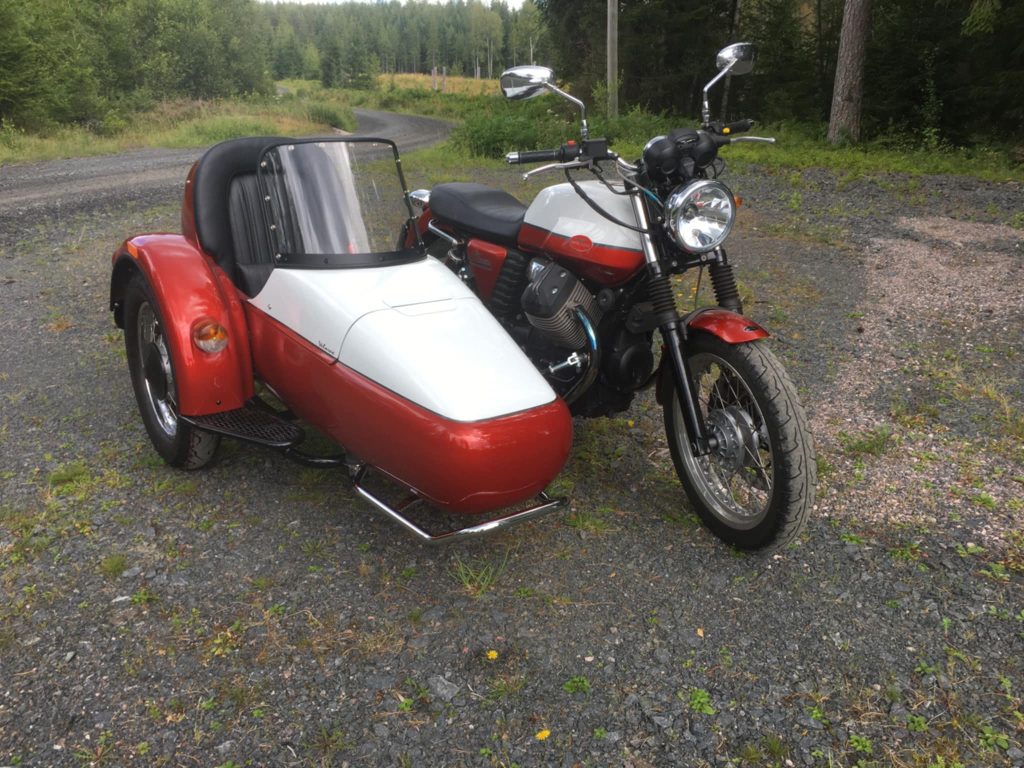 Lägg märka till det röda sätet i sidovagnen