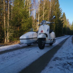 Ovanståendes bilder på Vespa Ekipage . Kunden har själv köpt Vespa’n och vi har monterad sidovagnen velorex 562.
